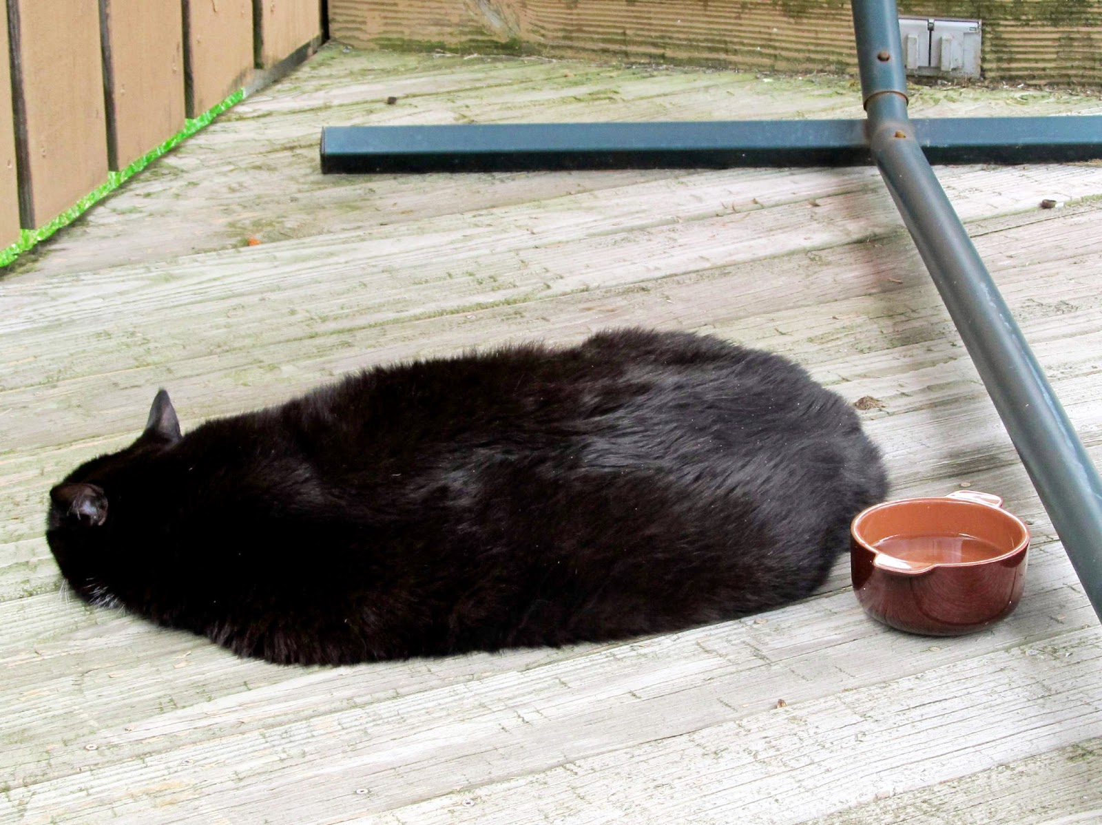 | Butch likes to nap under the hammock, and prefers his water refreshed regularly, thanks. |